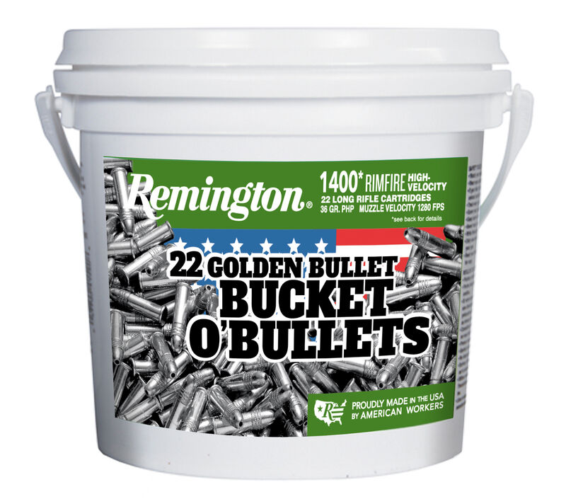 Whether you’re trying to get better, or just getting started, then pick up our 525-round Value Pack or 1400-round Bucket O’ Bullets. Each comes packed with our 36-grain, high velocity Remington Golden Bullet, top-notch rimfire ammo with smooth, reliable function.
