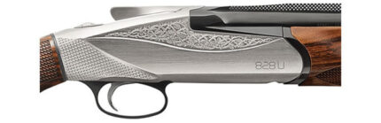 This Benelli 828U 12-gauge shotgun features a 26″ barrel, grade walnut stock, nickel engraved receiver, progressive comfort, removable trigger assembly, inertia triggers, smooth adjustable opening, pulse ejectors, and auto safety.