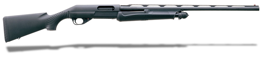 You may have thought that there was nothing left to be said about the pump shotgun. That was before Benelli applied Italian engineering and style to this most American of shotgun designs and the innovative Nova Pump took the market by storm. Doubters predicted that American shooters would never accept a gun that replaced the traditional wooden buttstock and separate external receiver with a single unit that encased the steel action directly in lightweight, weather-resistant polymer. They couldn’t have been more wrong! American shooters flocked to the stylish, ultramodern 12-gauge and for more than four years the Nova Pump has established an unchallenged reputation of dependability —— capable of handling everything from dove loads in the autumn haze to thumping waterfowl loads in driving rain. Shoot the Benelli Nova —— you’ll never think about pump shotguns in quite the same way.