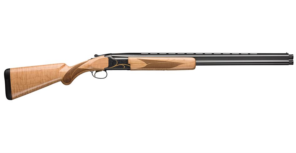 This exclusive Citori Gran Lightning 12 Maple features a lightning style satin finish AAAA Maple stock, high polish blued barrel and a high relief engraved receiver. Other features include an ivory front and mid-bead, and Midas grade Invector-Plus extended black band chokes.