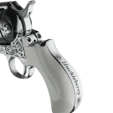 The Huckleberry features 3.5″ barrel, nickel finish with laser engraving and “Huckleberry” engraved on the backstrap. It is chambered in 45LC and has a Poly-Ivory grip.