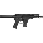 CMMG 57A9A0FAB Banshee MK57 5.7x28mm 20 5″ Black Nitride Medium Taper Threaded Barrel, EML 4″ M-LOK Handguards, Black Armor Cerakote Aluminum Picatinny Rail Receiver, Black Pistol Tube, CMMG Zeroed Grips
