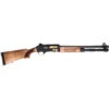It has blacked out extended chokes (in a mid thread pattern), a blacked-out action, and Select wood. Choke constrictions are Cylinder, Improved Cylinder, Light Modified, Modified, and Improved Modified.