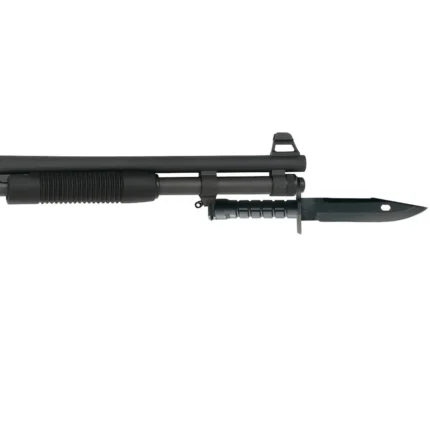 The 590A1 Tactical features ambidextrous safety; dual extractors; twin action bars; positive steel-to-steel lockup; and an anti-jam elevator ensuring smooth operation. The SPX model has an 8+1 capacity, black synthetic stock, and 20″ barrel with a black Parkerized metal finish. It includes a ghost ring sight and a bayonet.