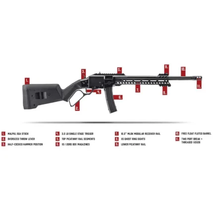 - Modern Ergonomics: Unlike traditional lever-actions, the Tombstone integrates modern design elements such as an M-LOK handguard and a Magpul SGA stock, providing superior ergonomics, customization options, and a comfortable shooting posture.