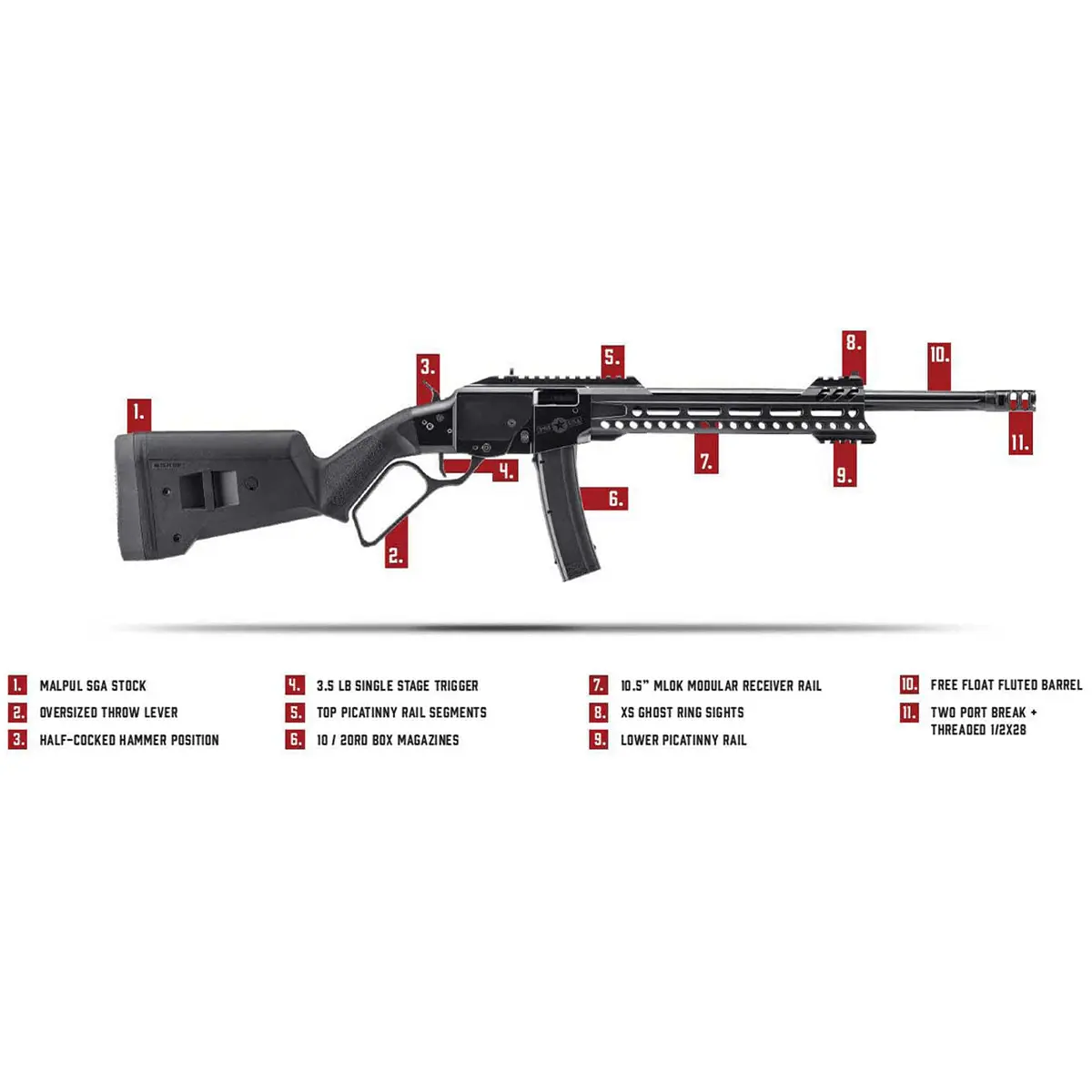 - Modern Ergonomics:Â Unlike traditional lever-actions, the Tombstone integrates modern design elements such as an M-LOK handguard and a Magpul SGA stock, providing superior ergonomics, customization options, and a comfortable shooting posture.