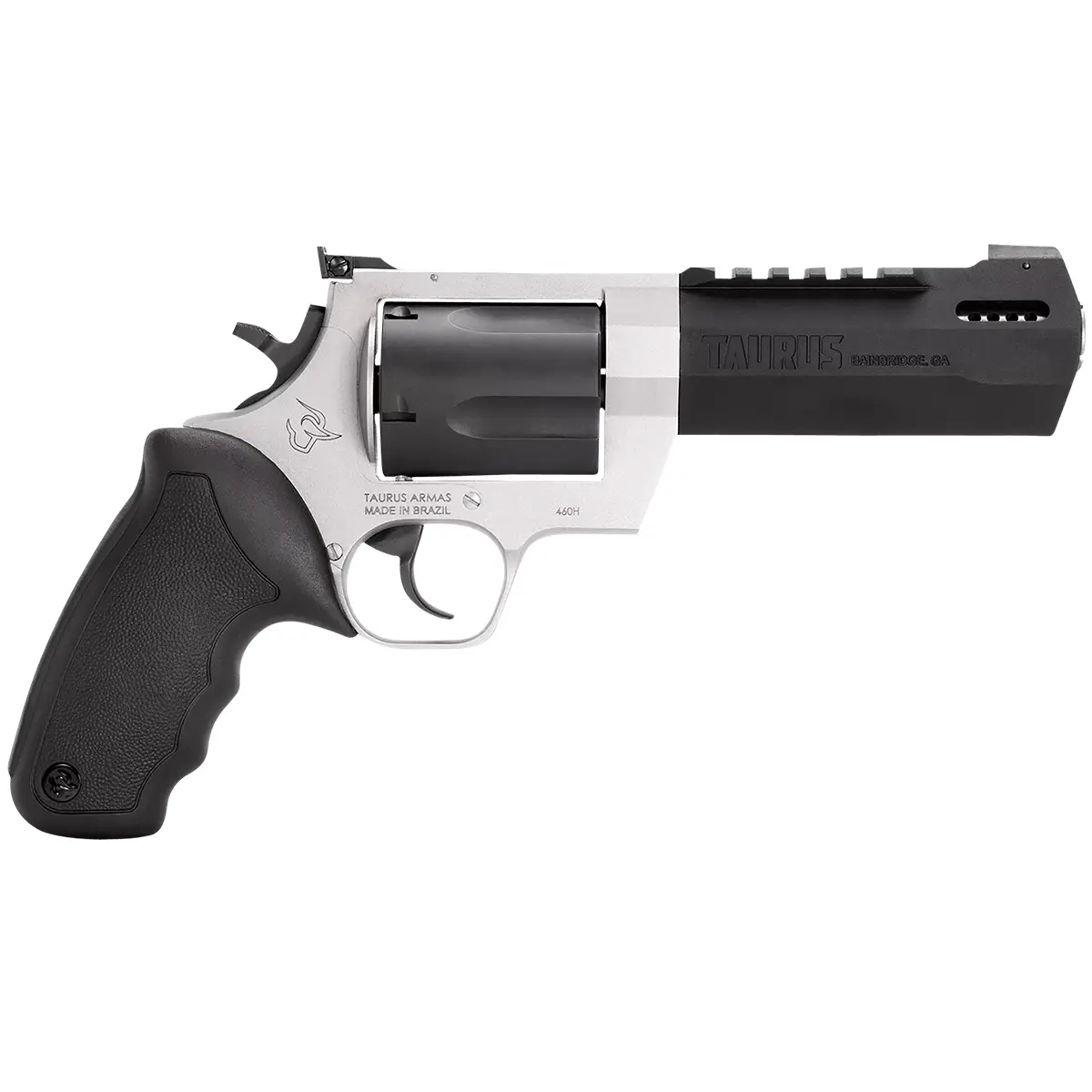 Taurus 2-460055RH Raging Hunter 460 S&W Mag 5rd 5.12″ Picatinny Rail/Ported Barrel, Matte Black Oxide Finish Cylinder, Matte Finish Stainless Steel Frame & Black Rubber with Integrated Cushion Insert Grip