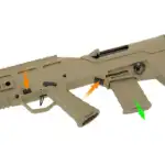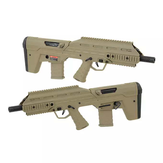 - bullpup design compatible with M4 magazine and 14mm CCW thread which allows you to install silencer or barrel extension.