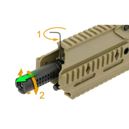 - adjustable Hop Up and functional bolt catch release – the bolt can be locked backward which will allow the operator to easily adjust